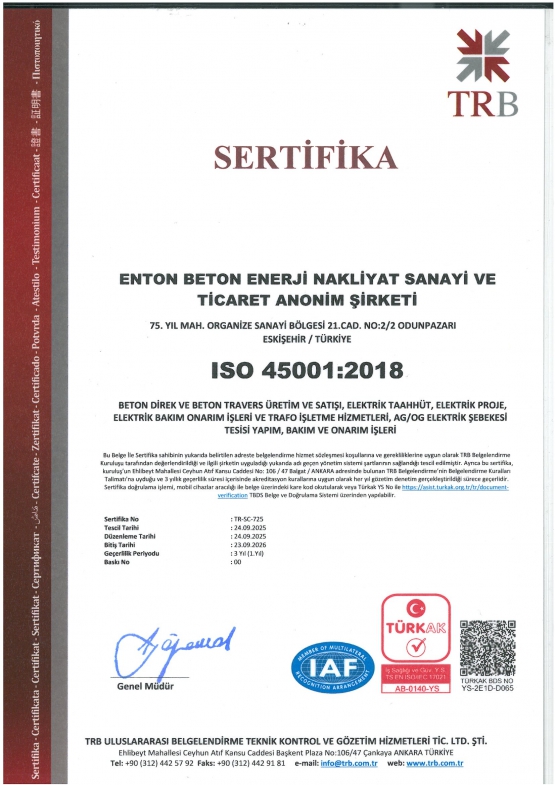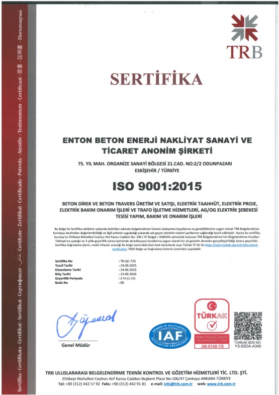 Enton, kaliteden ödün vermemek için belli prensipler ve azami iş disiplini çerçevesinde üretimini gerçekleştirmektedir. TSE, ISO, OHSAS gibi Ürün ve Yönetim Sistem Belgelerinin yanında sürekli olarak yapılan makine-teçhizat bakımı ve hammadde testleri bu kaliteyi sürekli hale getirmektedir.
